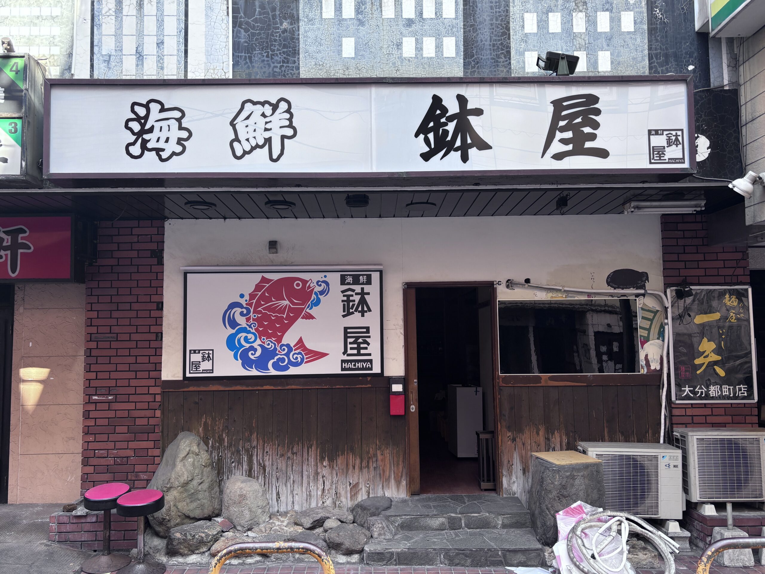 大分市都町 海鮮鉢屋様の看板工事 投稿日: 2026年1月26日2026年3月9日 投稿者: m-tech 知人の紹介で大分市都町にある海鮮鉢屋様の看板製作・施工をさせていただきました。 施工前 施工後 施工内容は 上部電照看板看板面新規製作・交換 壁面看板製作・上部照明付き マグネット式ホワイトボード 以上になります。 今回はご依頼ありがとうございました